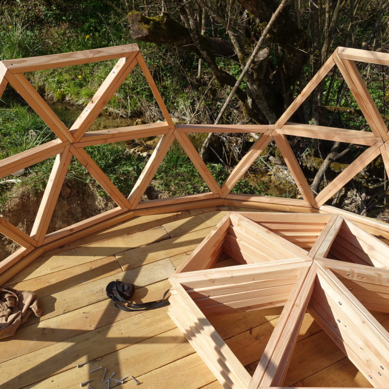 Son ossature bois triangulée en fait une des constructions démontables la plus résistante aux éléments : pluie, neige, vent, ses capacités d’adaptation et de résistance sont exceptionnelles.