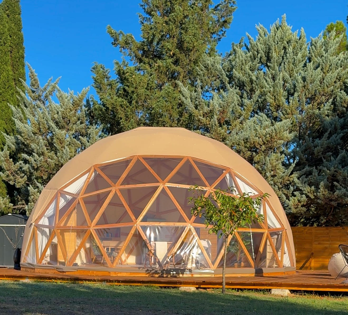 Le dôme géodésique, de part sa conception, est modulaire. Partant de ce principe, il est possible de coupler plusieurs dômes entre eux, permettant ainsi la création d’espaces distincts.